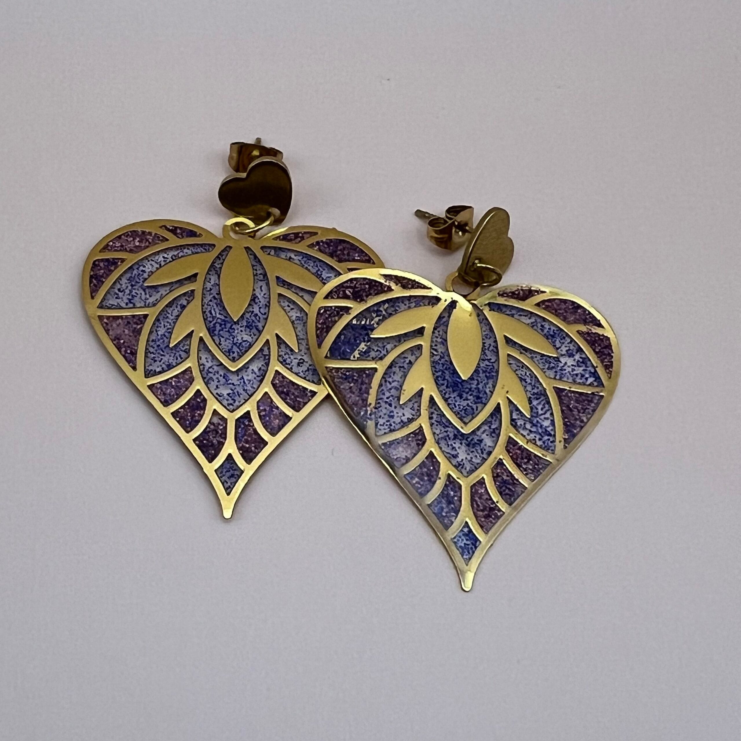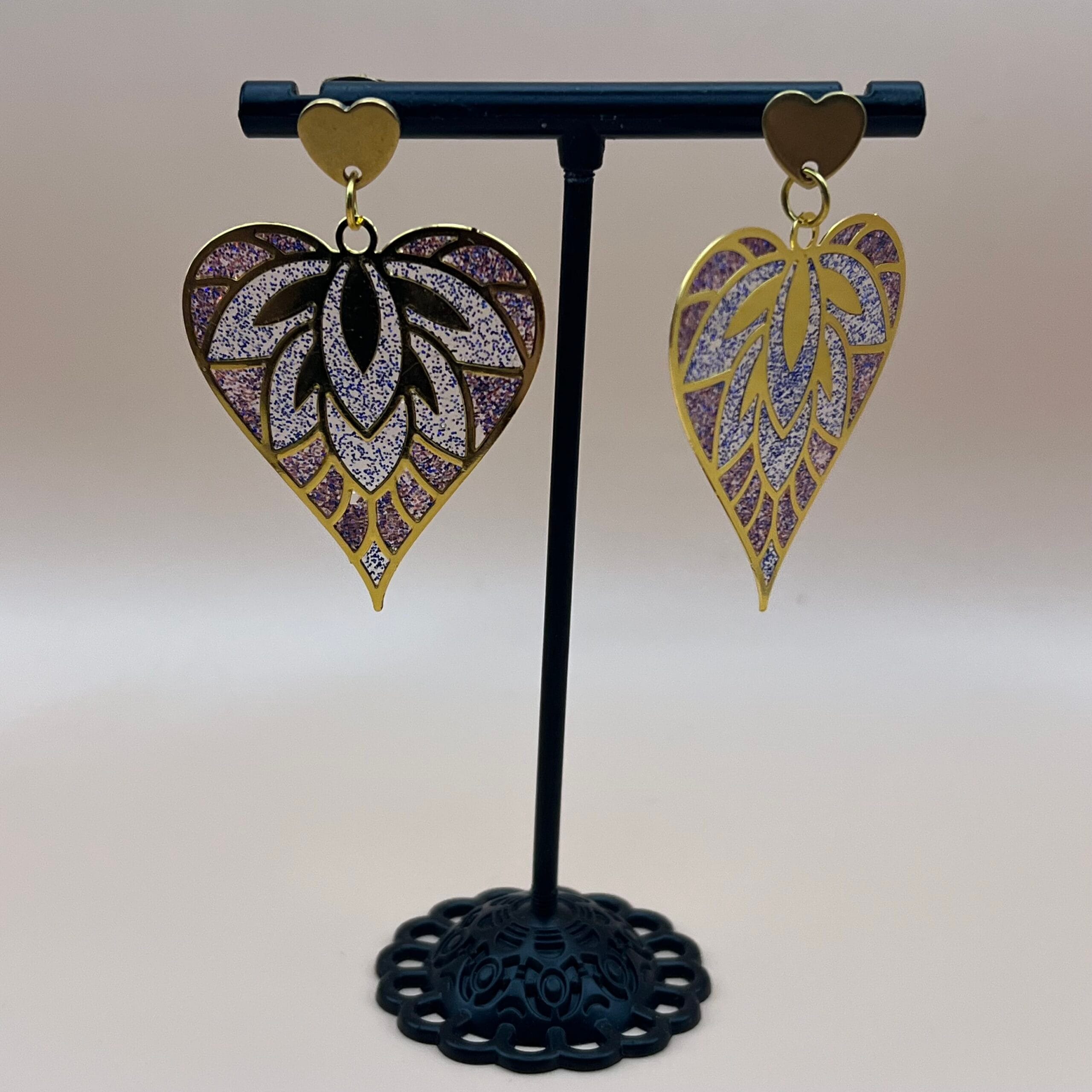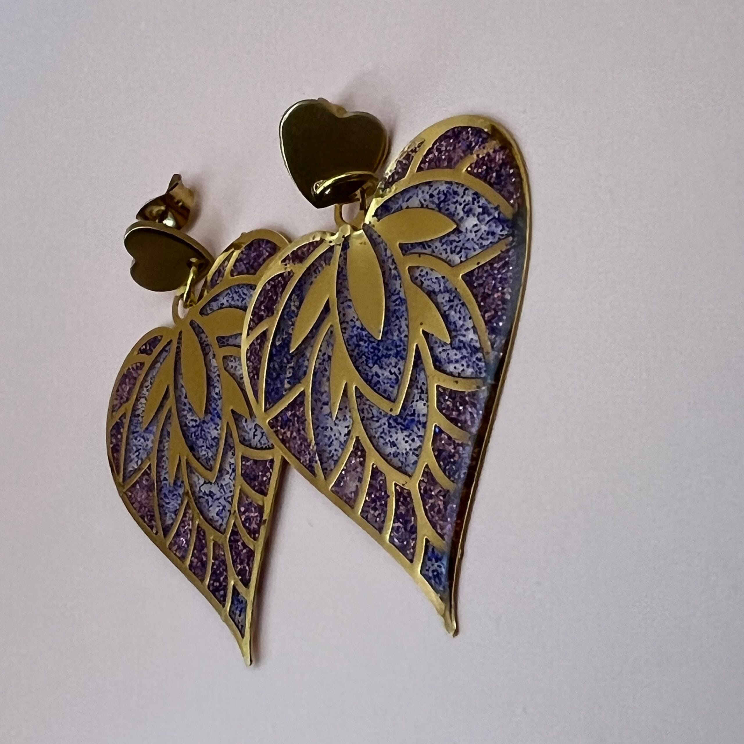Boucles d'oreilles en résine et acier inoxydable et hypoallergénique. Incrustées de paillettes