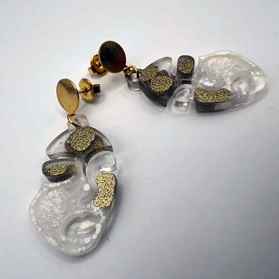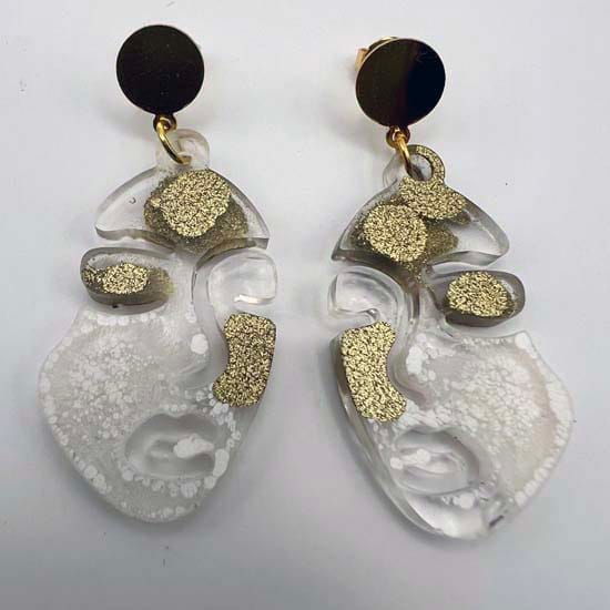 Boucles d'oreilles en résine transparente teintée Or et nacre et clous dorés à l'or fin