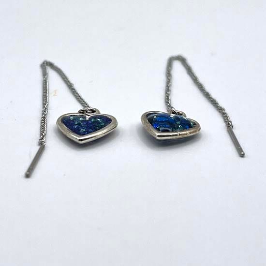 Boucles d'oreilles fil en acier inoxydable et hypoallergénique et en résine incrustées de pierres métallisées.