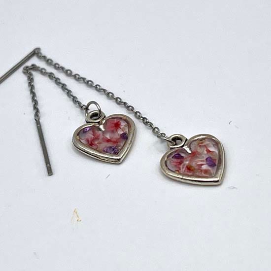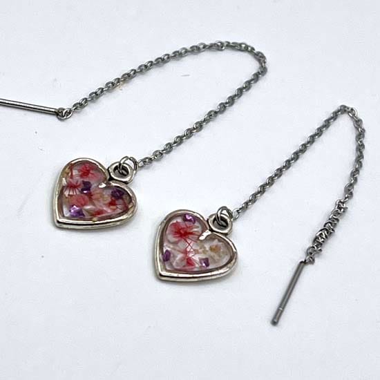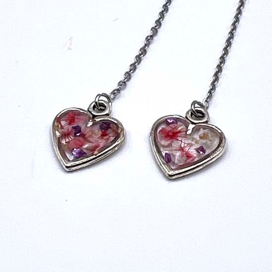 Boucles d'oreilles fil en acier inoxydable argenté et en résine incrustée de fleurs séchées