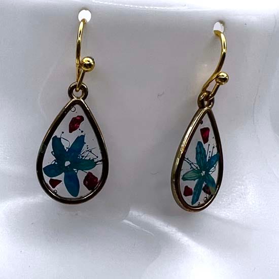 Boucles d'oreilles en résine incrustée de fleurs séchées et en acier inoxydable et hypoallergénique