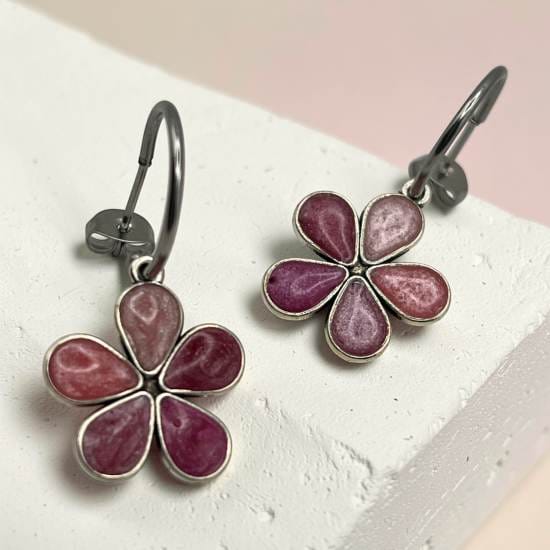 Avec leurs pétales marbrés dans des nuances de rose et de mauve, ces boucles d’oreilles apportent une touche fraîche, féminine et lumineuse à votre style. Un bijou délicat et irrésistible qui sublime instantanément le visage.