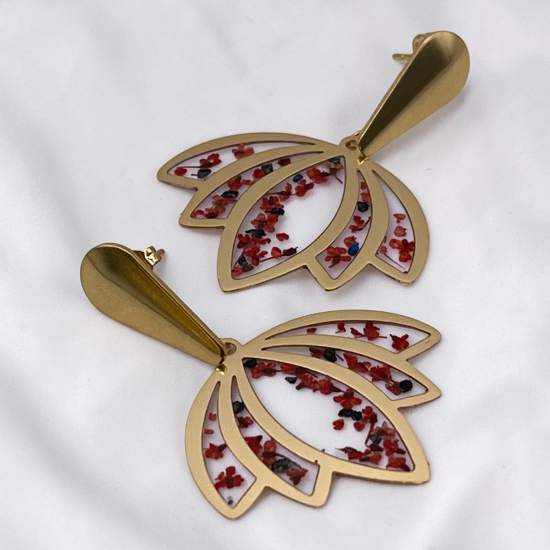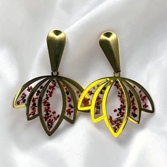 Avec leurs pétales ajourés dorés et leurs éclats colorés emprisonnés dans la résine, ces boucles d’oreilles offrent un style lumineux et raffiné. Un bijou original qui attire le regard et sublime instantanément chaque tenue.