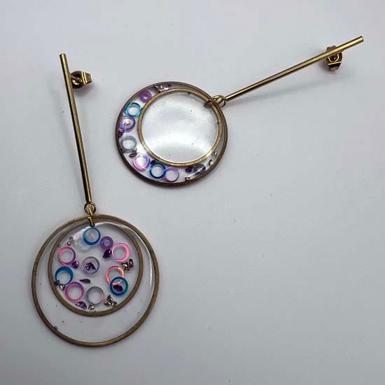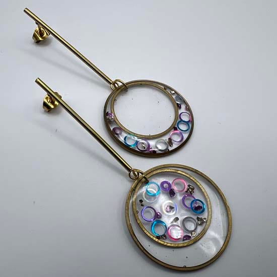 Leur design suspendu sur une tige apporte un mouvement et élégance, tandis que les inclusions scintillantes captent la lumière à chaque geste. Fabriqués avec des matériaux légers et résistants, elles sont aussi confortables qu’éblouissantes.