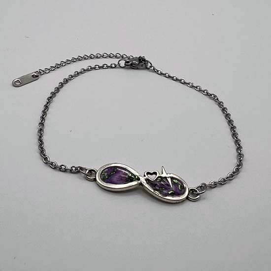 Bracelet en acier inoxydable et hypoallergénique et en résine transparente incrustée de fleurs séchées et pierres métallisées