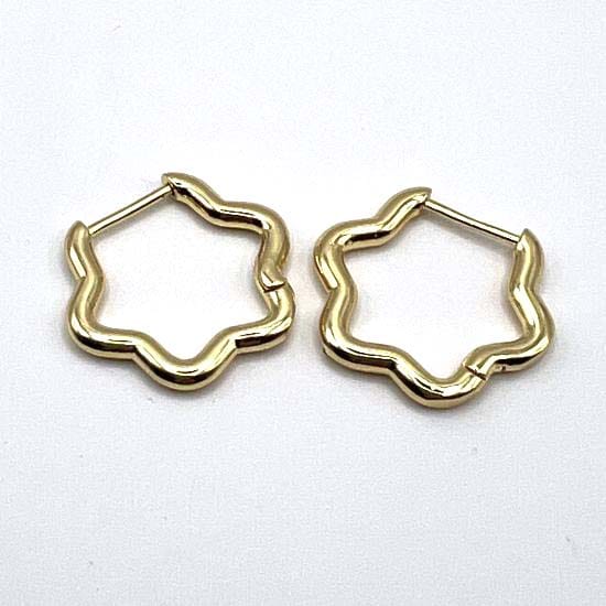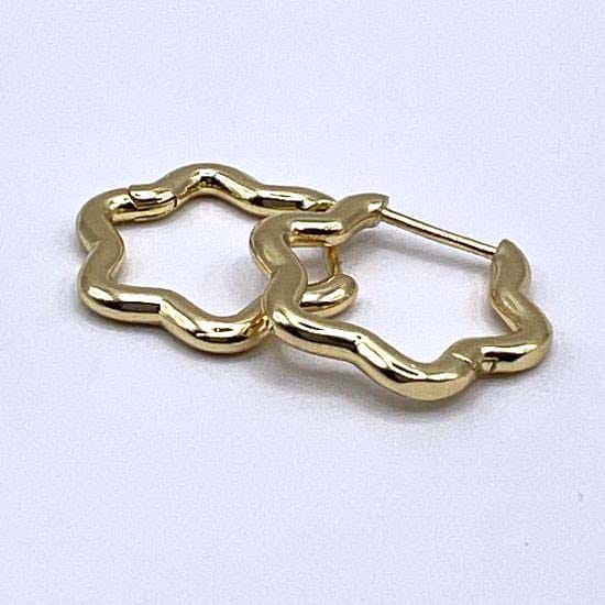 Créoles aux courbes ondoyantes évoquant une fleur stylisée bercée par les vagues. leur design fluide et lumineux mêle modernité et délicatesse comme une danse de pétales dorés au creux de l’oreille.
