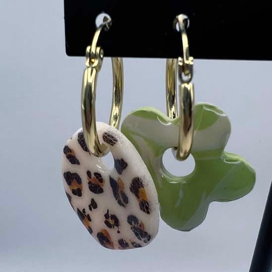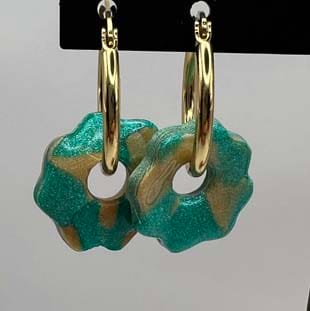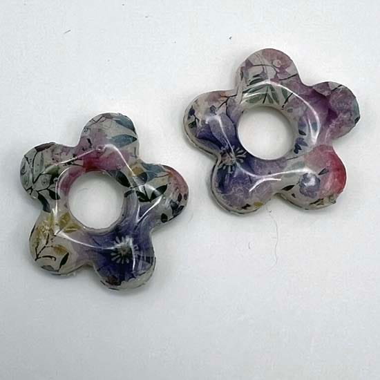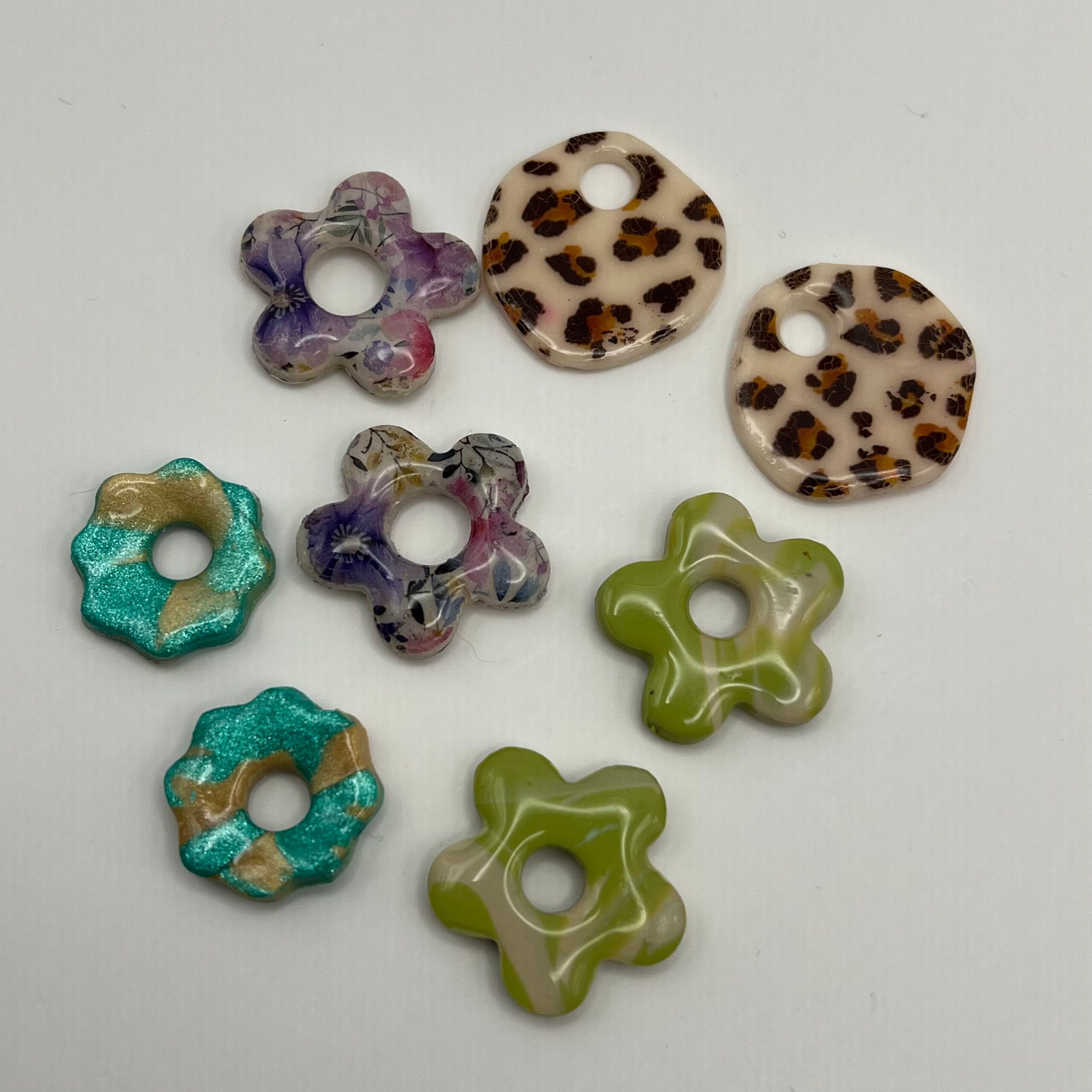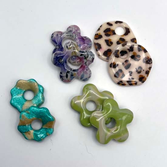 Lot de 4 paires de pampilles en résine teintée et en pâte polymère résinée