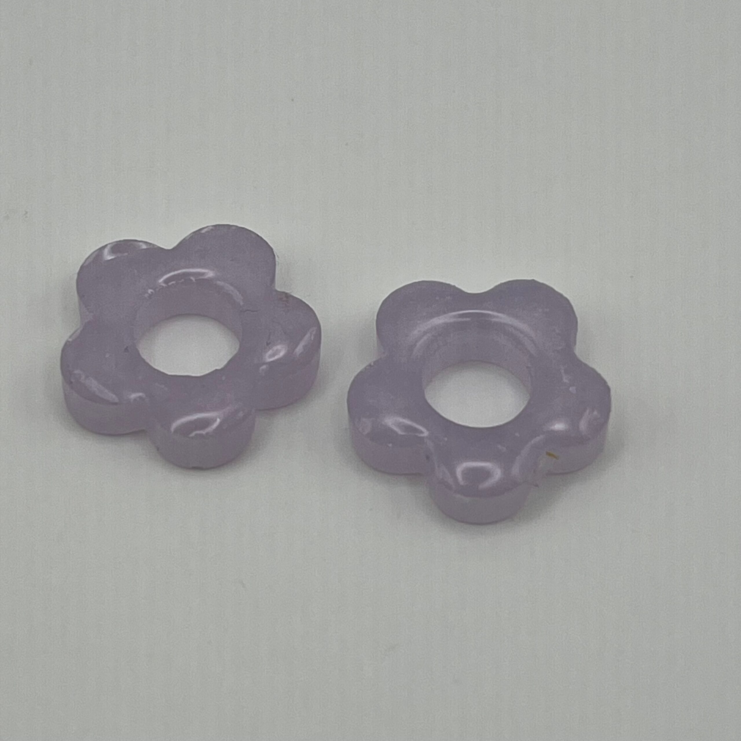 Pampilles fleur en résine, poudre mica rose pastel et paillettes